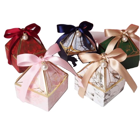 Özel şeker çikolata romantik Mini zanaat üçgen karton kağıt düğün hediye kutusu ambalaj ile şerit