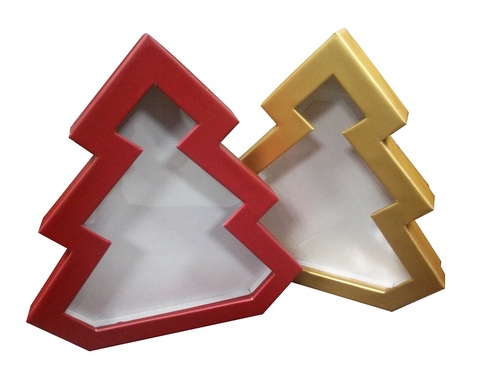 Noel ağacı şekilli şeker ve çerez ambalaj hediye karton kutu açık pencere ile